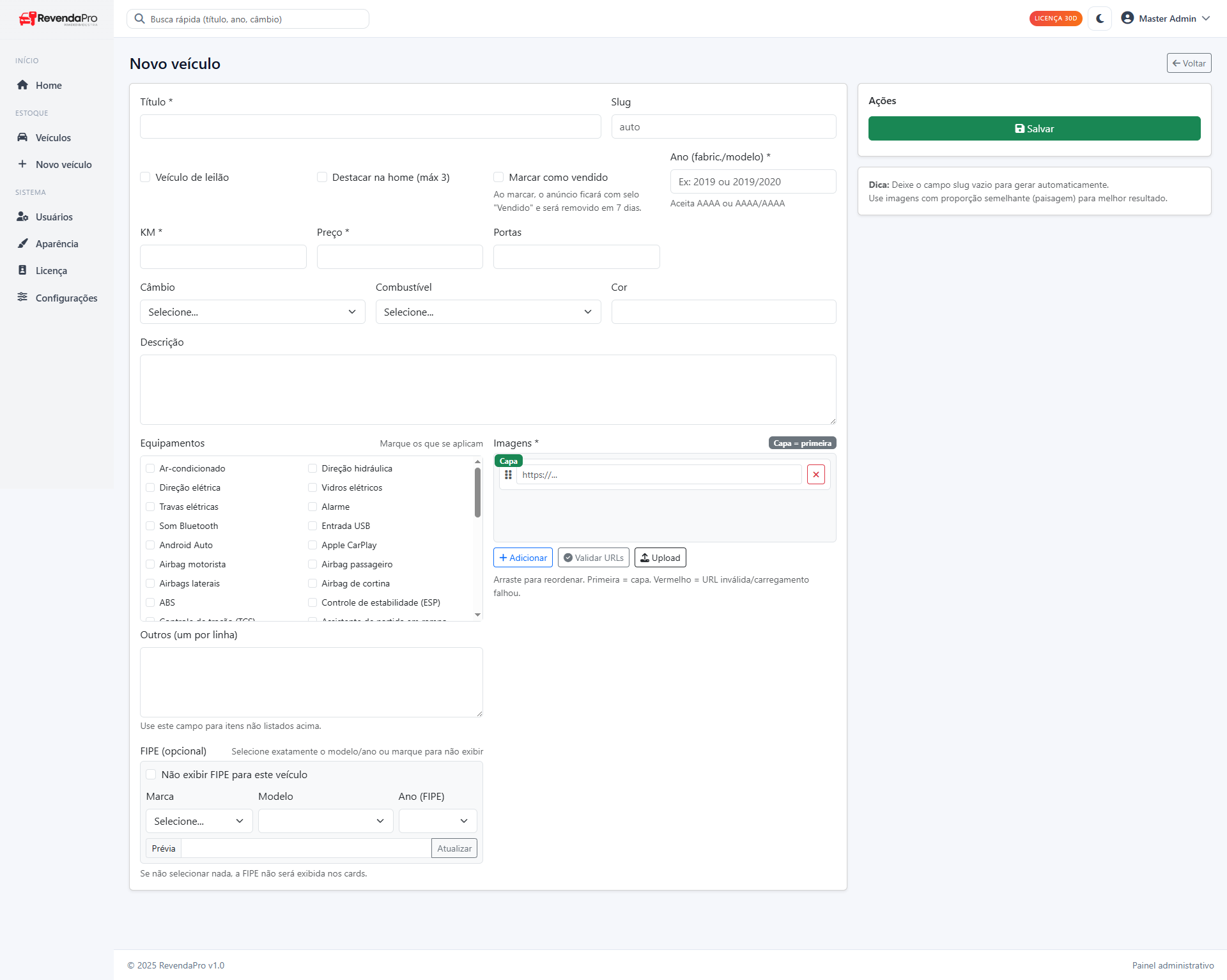 Exiba ou oculte facilmente o valor da tabela Fipe do veículo no anúncio.